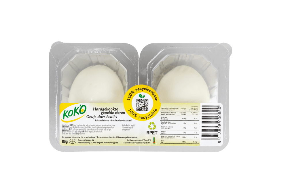 KOK’O 2x1, dat zijn twee scharreleitjes (medium) die apart zijn verpakt onder beschermende atmosfeer.