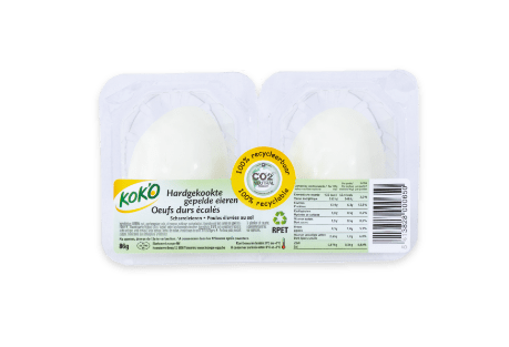 KOK’O 2x1, dat zijn twee scharreleitjes (medium) die apart zijn verpakt onder beschermende atmosfeer.